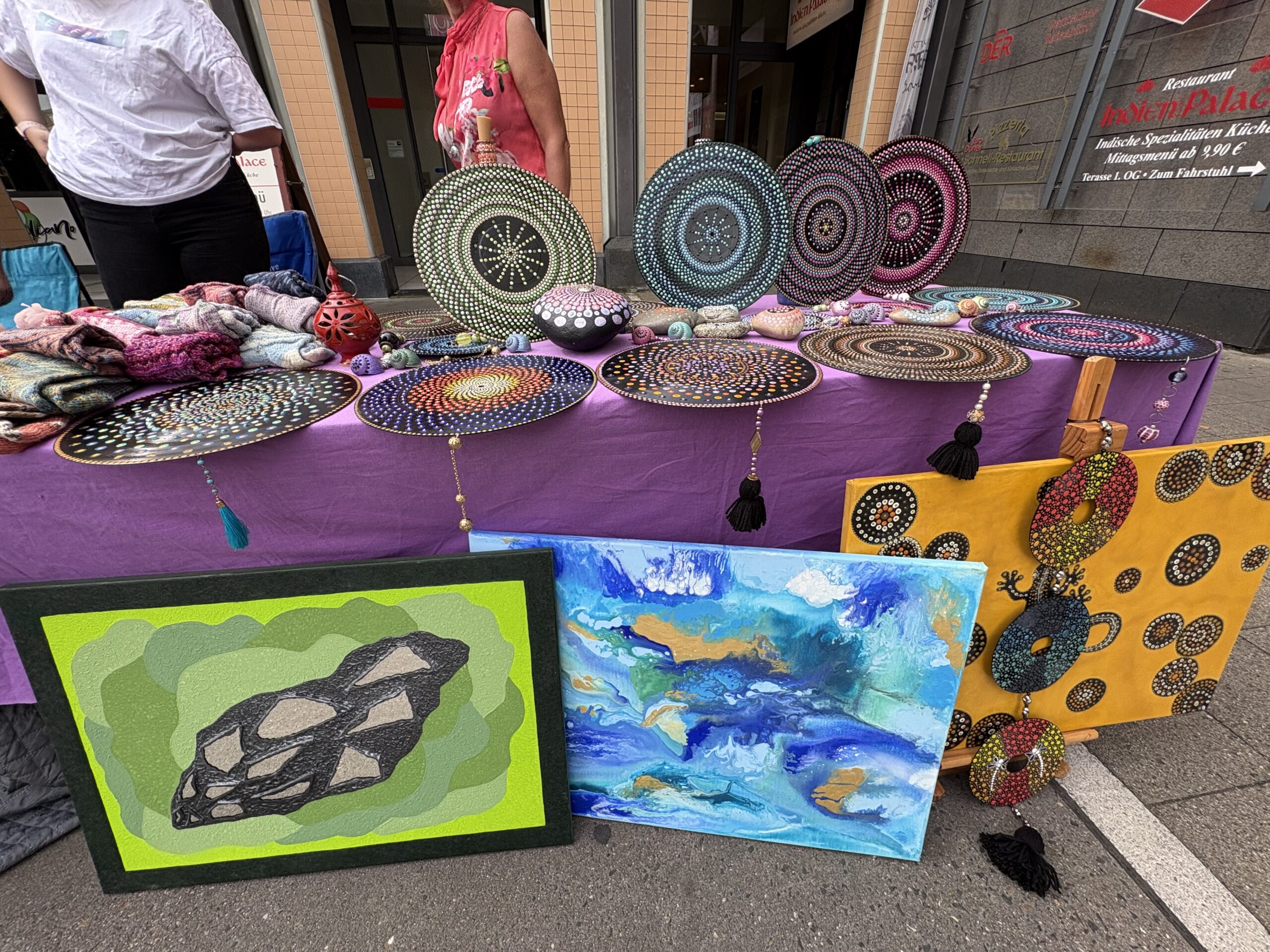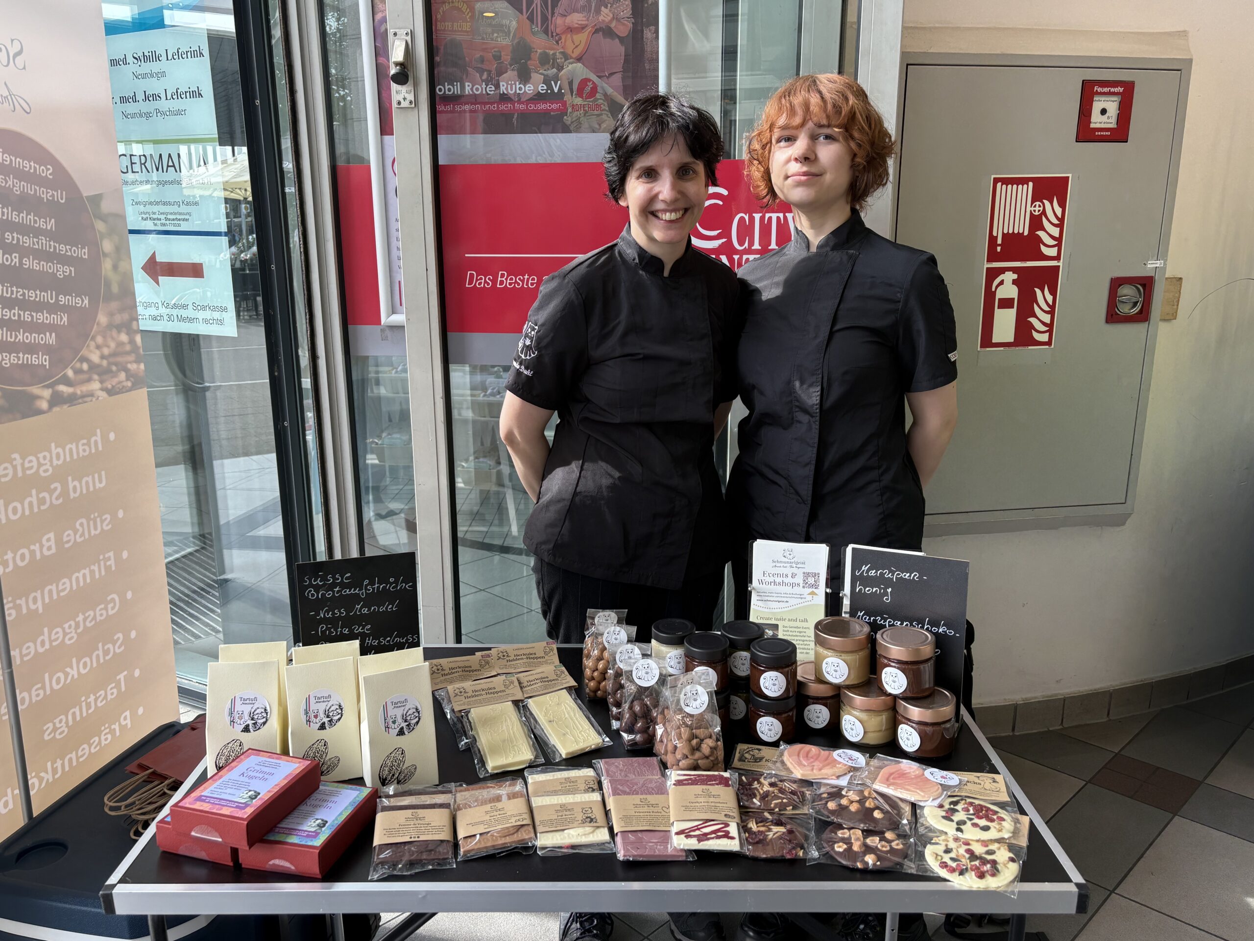 Besonderes Interesse fanden die prämierte Schokoladenmanufaktur Schmunzelgeist mit Tessa Bingemann und Amanda Dahl, Fitline mit Produkten rund um Wohlbefinden sowie La Marina (Naturkosmetik) aus Kassel mit naturnahen Pflegeideen und Geschenkartikeln. Aber auch die selbstbemalten Schallplatten von BOB’S CANDLES und viele weitere Deko Artikel sowie der „Cookit“ von BOSCH waren durchaus beliebt bei der Kundschaft