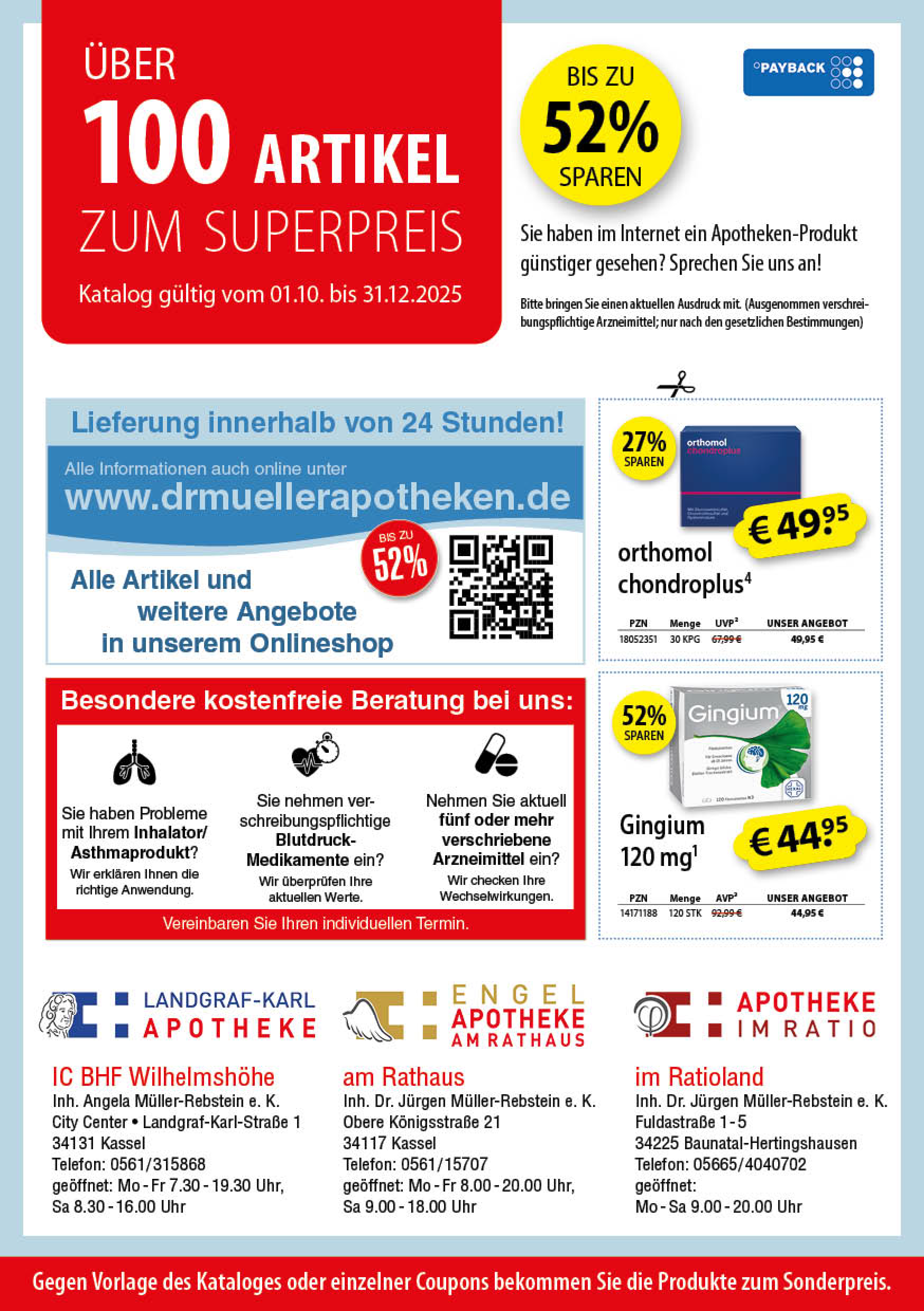Vom 01. Oktober bis 31. Dezember 2025 erhalten Sie über 100 Artikel zum Sonderpreis – darunter viele Produkte rund um Gesundheit, Pflege und Wohlbefinden.